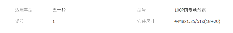 產品: 瀏覽次數:642100P前制動分泵 安裝尺寸4-M8x1.25/51x(18+20) 油孔規格2-M10-1