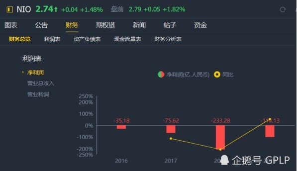 以2016年為起點,蔚來汽車虧損幅度“變本加厲”。從2017年到2019年,蔚來汽車虧損金額分別為75.62億元、233.28億元和114.13億元,凈利潤同比下滑幅度分別為75.62%、208.50%和51.08%。這其中,最明顯的虧損指標(biāo)是蔚來汽車持續(xù)處于負(fù)值狀態(tài)中的毛利率。