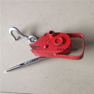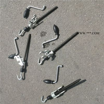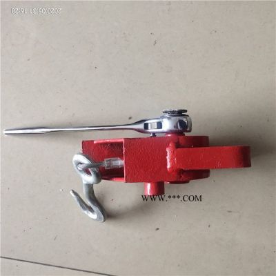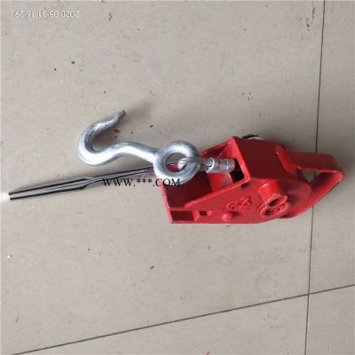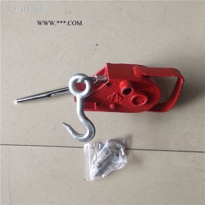 三、安裝,用搖把將防溜器座退到外部,做卡在手閘桿座上,拉簧鉤掛在手閘鏈上,用搖把旋緊至拉簧間距1-2毫米,然后用鎖鎖上搖把即可,摘除反操作程序取出。