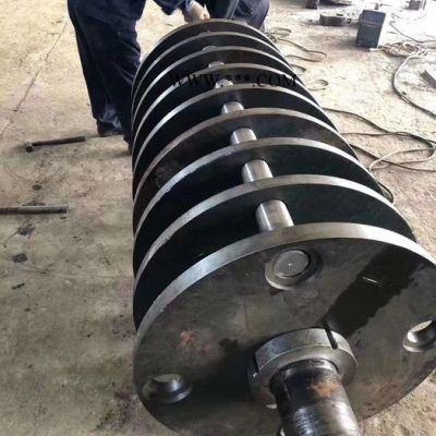 主軸的錘板、軸、隔圈、錘頭銷軸均采用合金材料。錘板上工作面采用堆焊,形成高強(qiáng)度耐磨層。磨損后可以重新堆焊反復(fù)修復(fù),節(jié)省使用成本。破碎錘數(shù)量為10個(gè),滾壓錘數(shù)量為13個(gè);主軸軸承采用lyc軸承,可以承受200℃的高溫,并經(jīng)嚴(yán)格的工藝預(yù)試對(duì)軸承游隙進(jìn)行了優(yōu)化。針對(duì)主軸承受變動(dòng)載荷和設(shè)備使用工況,主軸軸承采用油脂潤(rùn)滑,主軸上的破碎錘和滾壓錘采用特有的楔形排布技術(shù),可以使廢鋼在開度方向99%的破碎,成產(chǎn)效率更高。