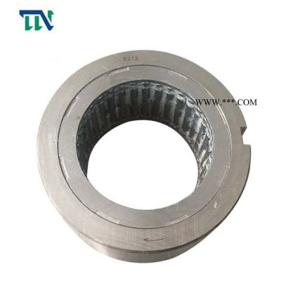 在安裝時,避免使用錘子直接敲打凸輪離合器. 凸輪離合器必須按回轉方向指示的要求安裝在軸上。在安裝凸輪離合器時,離合器兩端應使用軸承固定,從而保證軸與凸輪離合器外圈的同軸度,以吸收可能施加在外圈徑向上的載荷.支架孔和軸的同心度應在0.05m以內.鍵的外型應遵照JIS B1301-1959的要求.